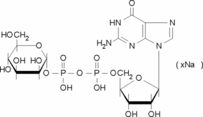 Guanosine diphosphate mannose (GDP-mannose) is a nucleotide sugar substrate for glycosyltransferase (mannosylation) reactions mediated by mannosyltransferases. GDP-mannose may be used to study its transport, mannose metabolism, and presence as a component of the sugar nucleotide pools of various cell types. GDP-mannose is used as a precursor of