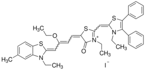 5-[3-Ethoxy-4-(3-ethyl-5-methyl-2(3H)-benzothiazolylidene)-2-butenylidene]-3-ethyl-2-[(3-ethyl-4,5-diphenyl-2(3H)-thiazolylidene)methyl]-4,5-dihydro-4