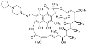 Rifapentine is an antibiotic clinically used to treat tuberculosis. It is used in tuberculosis research1.
