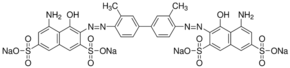 Trypan blue is a blue acid dye that contains two azo chromophores. It is a large, hydrophilic, tetrasulfonated dye. Trypan blue has been used as a vital stain as it is excluded by most living cells. It has been used to stain collagen and amyloid. It is also used in chlamydospore agar for fungi. When Trypan blue binds to proteins the resulting complex emits red fluorescence.